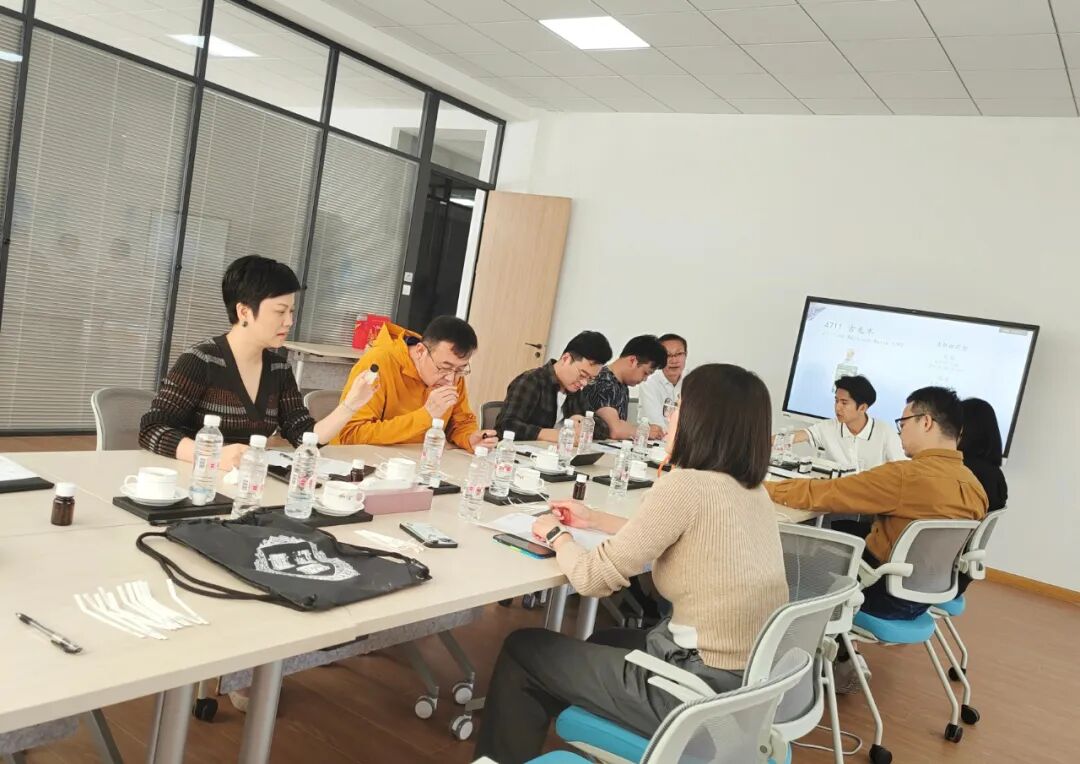 首先,曹老师以2款香水:匈牙利水和古龙水为例,教我们如何拆解香水配方,并让每位学员亲闻了基础香料。让很多学员第一次见识了香水的庐山真面目,培训室满屋飘香。